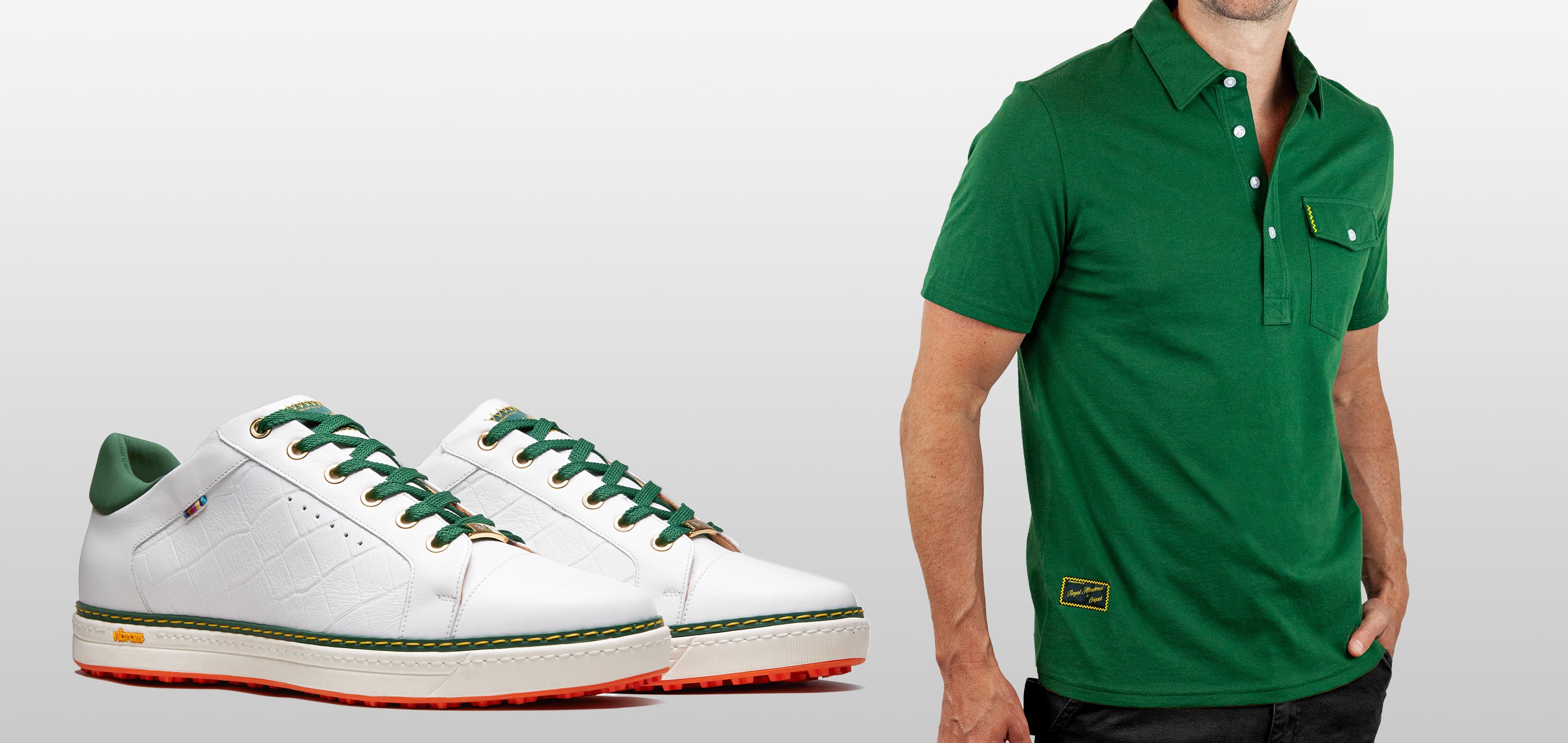 This head-turning duo includes men’s leather golf shoes and a 4-button placket Players shirt.