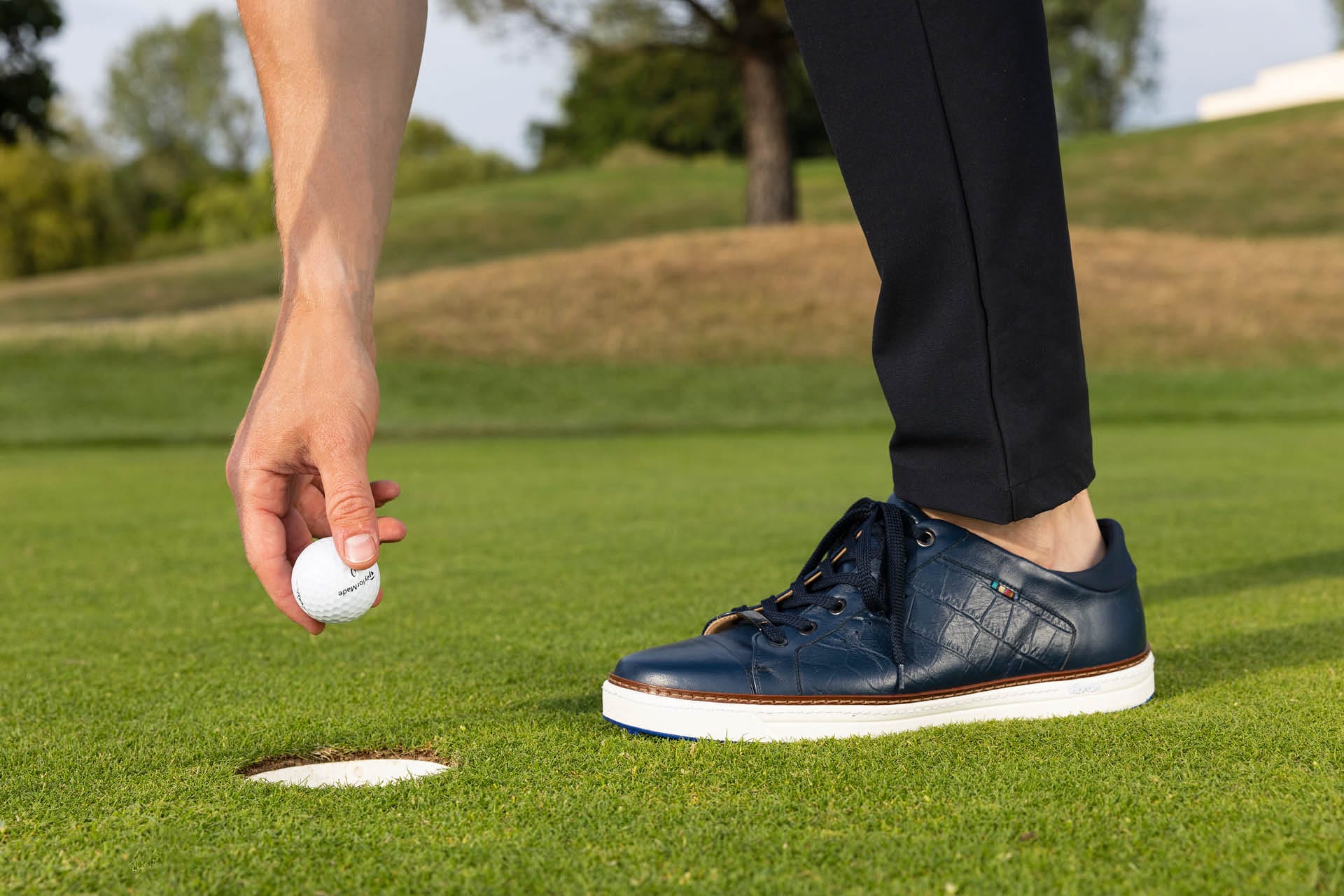 Men's Italian Napa Leather Spikeless Navy Golf Shoe.