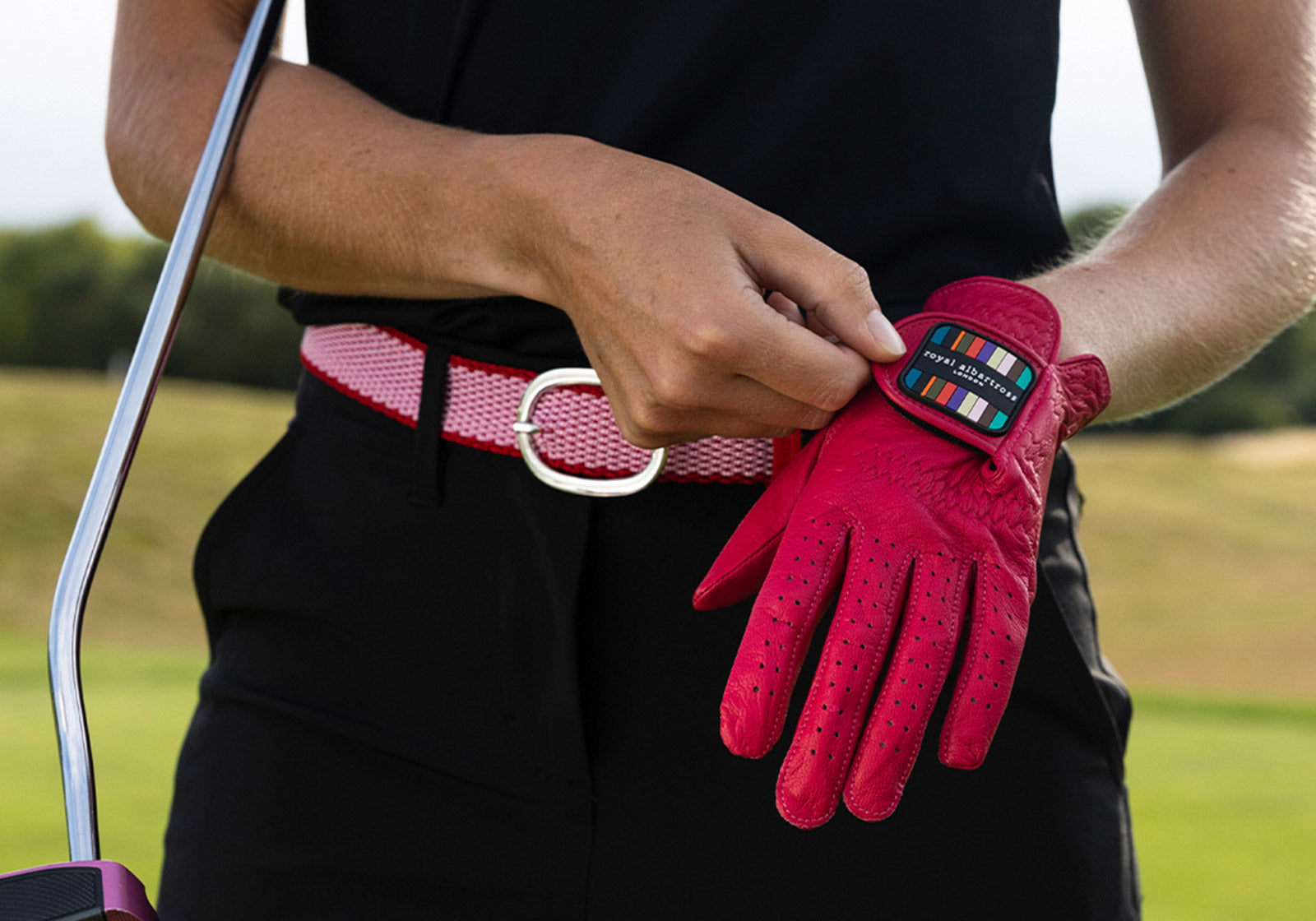 A durable woven belt, in lipstick red with white accents for a bold look that plays on the golf course and beyond. The woven elasticized construction improves fit and comfort, finished with a leather end tab and stylish oval brass buckle.